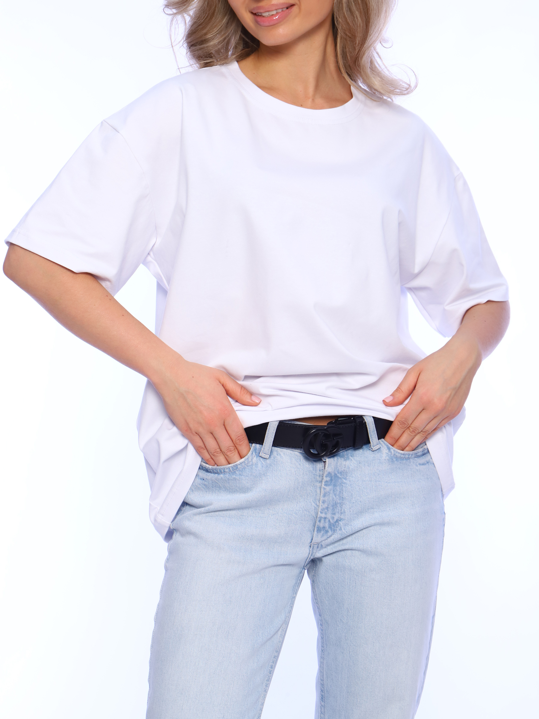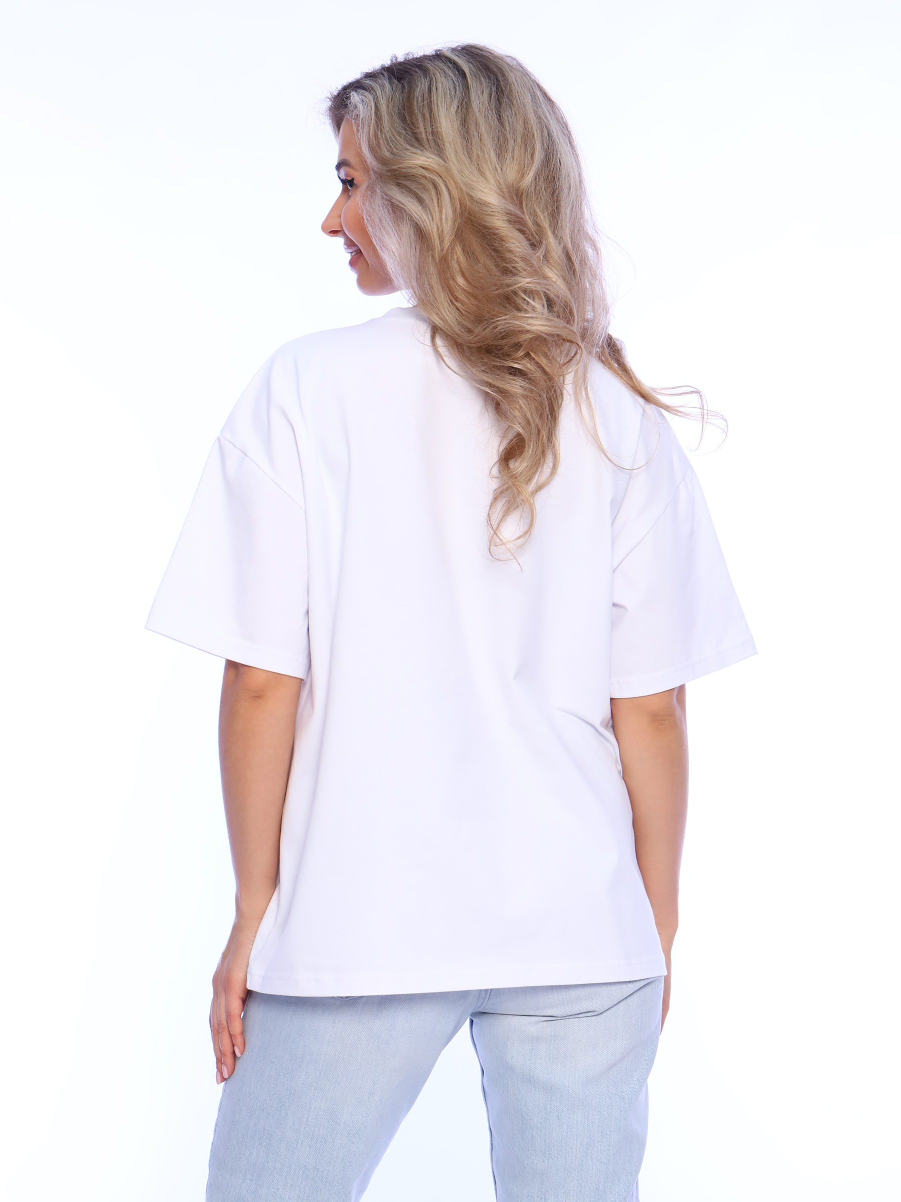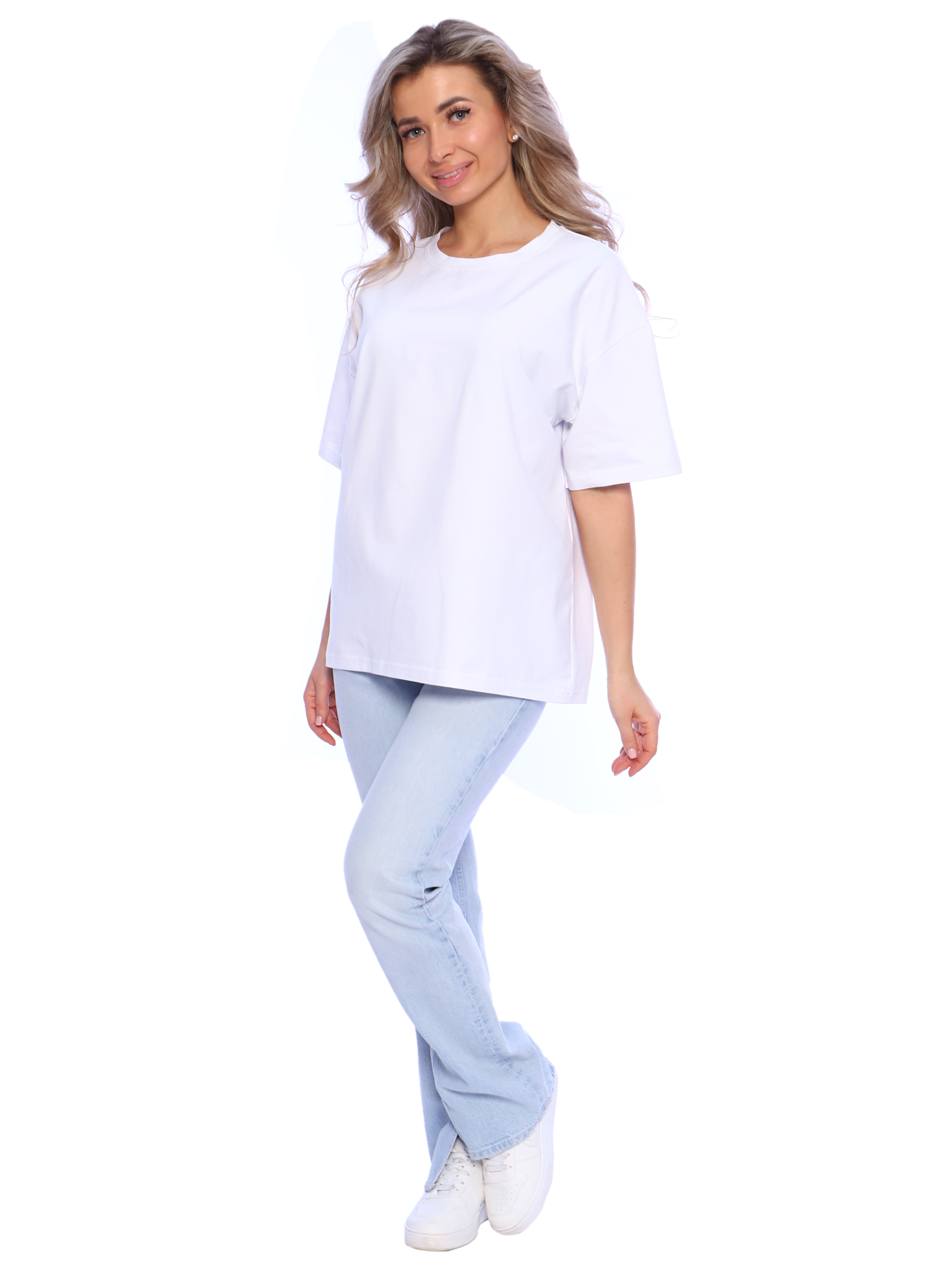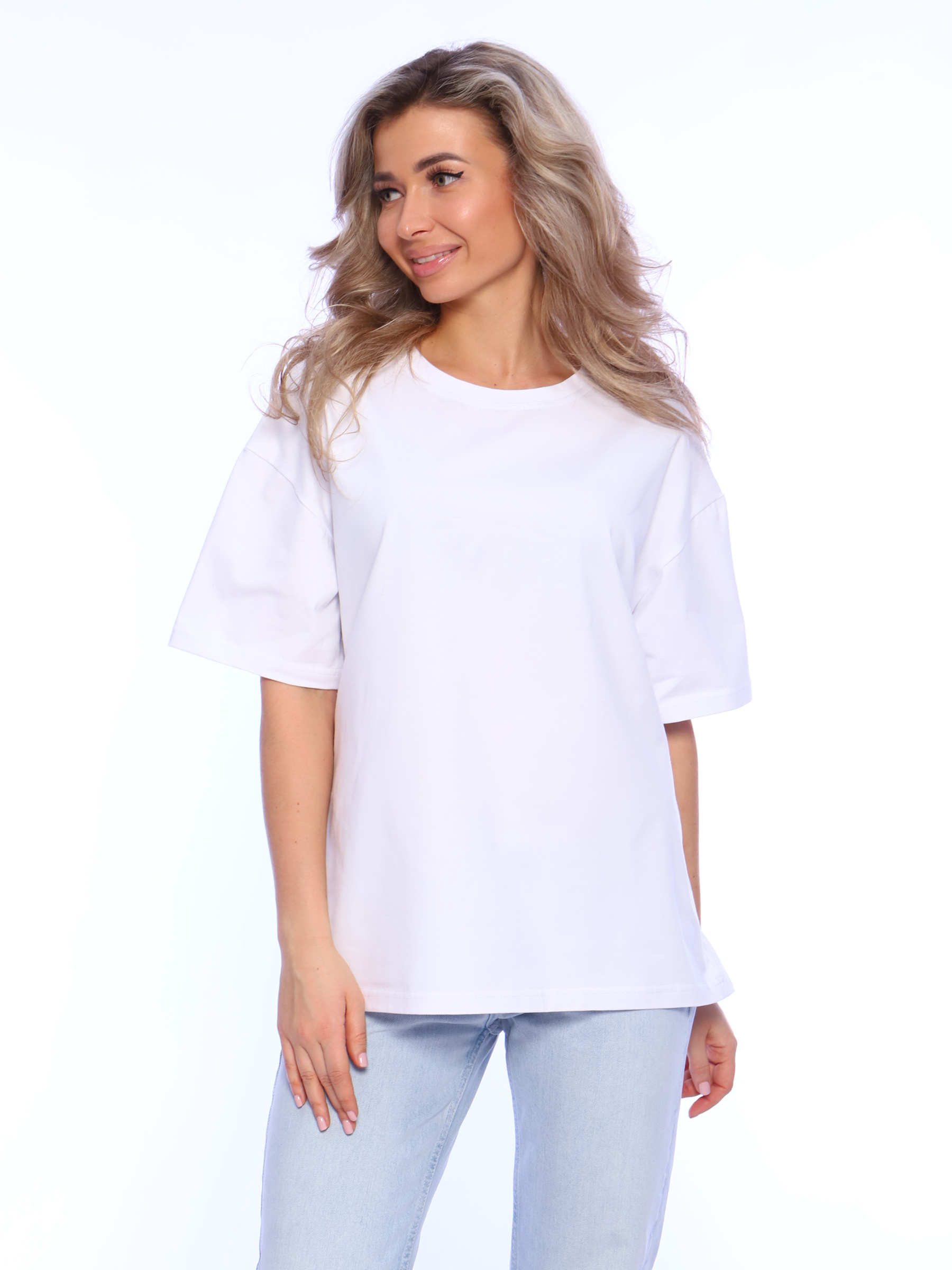 Женская футболка оверсайз выполнена из мягкого хлопкового полотна высокой плотности приятного к телу. Посадка свободная, футболку будет удобно носить навыпуск или заправлять. Летняя футболка будет хорошо сидеть на женщинах и девушках с любым типом фигуры, в том числе беременных и кормящих мамах. Стирать футболку без принта с вещами похожего цвета и вынимать сразу после стирки. Гладить с изнаночной стороны.