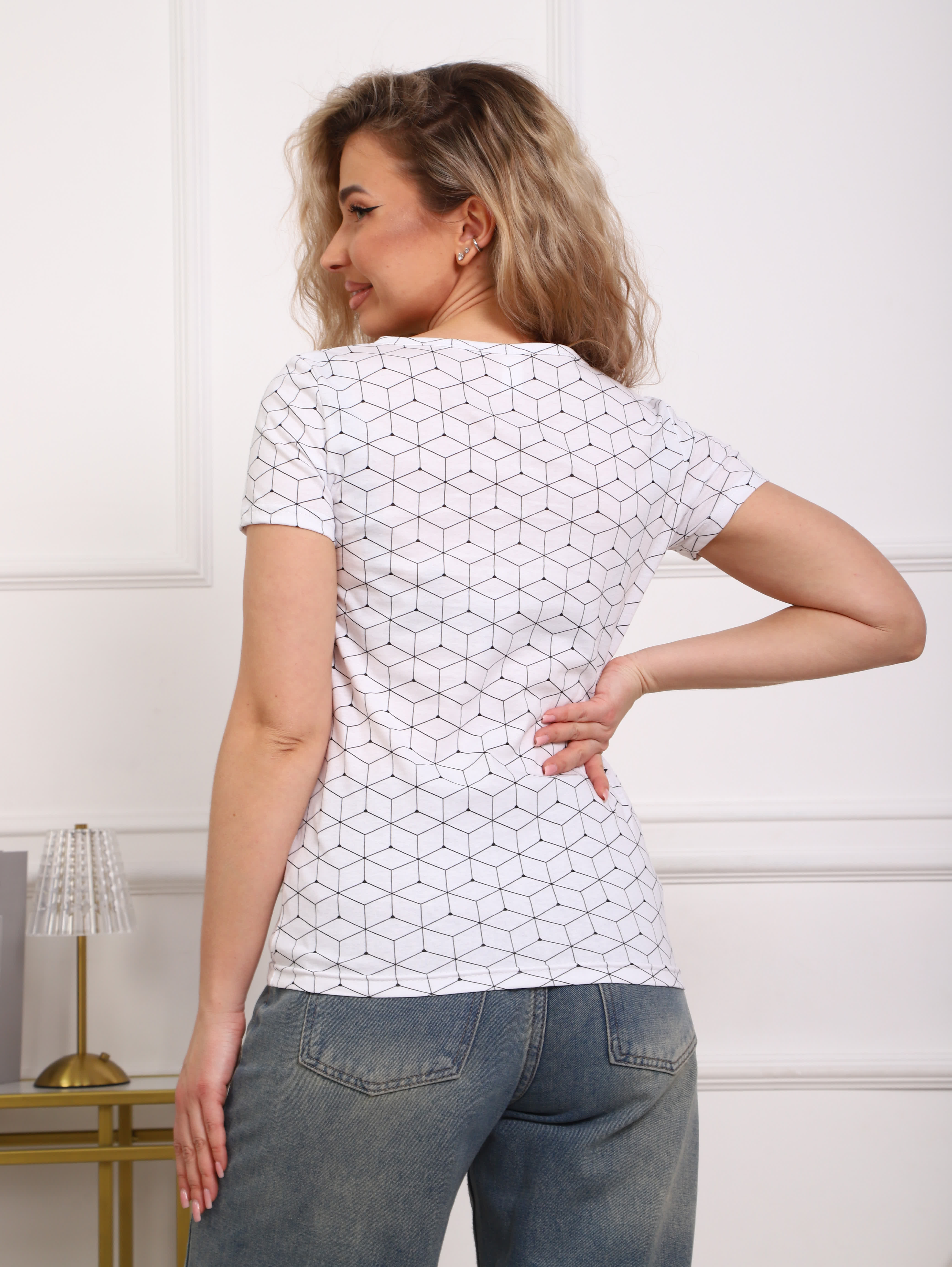 Легкая футболочка сшита из мягкой и тонкой, но плотной и непросвечивающей, приятной к телу и дышащей ткани (100% хлопок). Она доступна в широком размерном ряду от 42-го до большого 58-го (плюс-сайз). В линейке бренда вы найдете модели разных цветов, чтобы выбрать идеально подходящую вам по цветотипу и стилю.