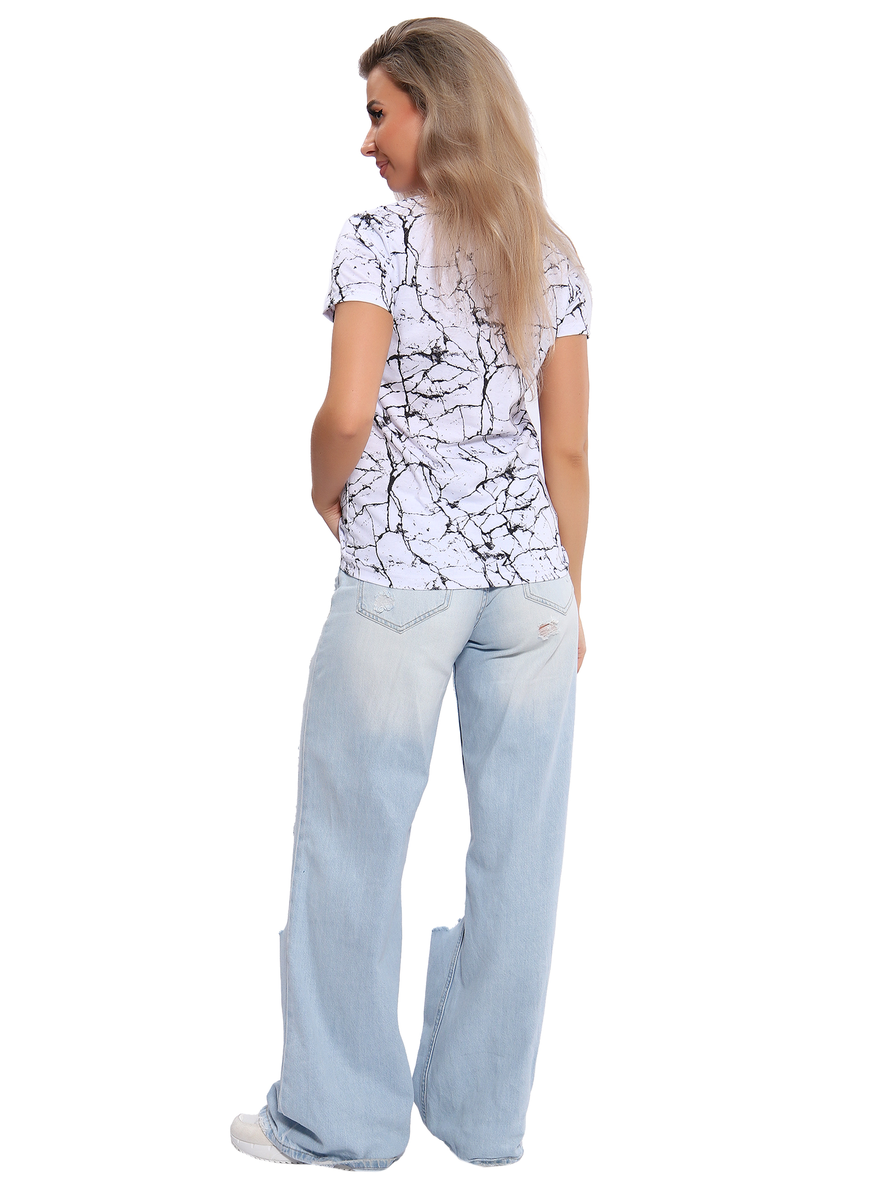 Футболка с красивым, ярким рисунком - это комфортная одежда, которую выбирают для ношения в летний или теплый демисезонный период. У базовой модели из коллекции бренда ТИО прямой полуприлегающий фасон и оптимальная длина, короткие рукава и округлый вырез горловины.