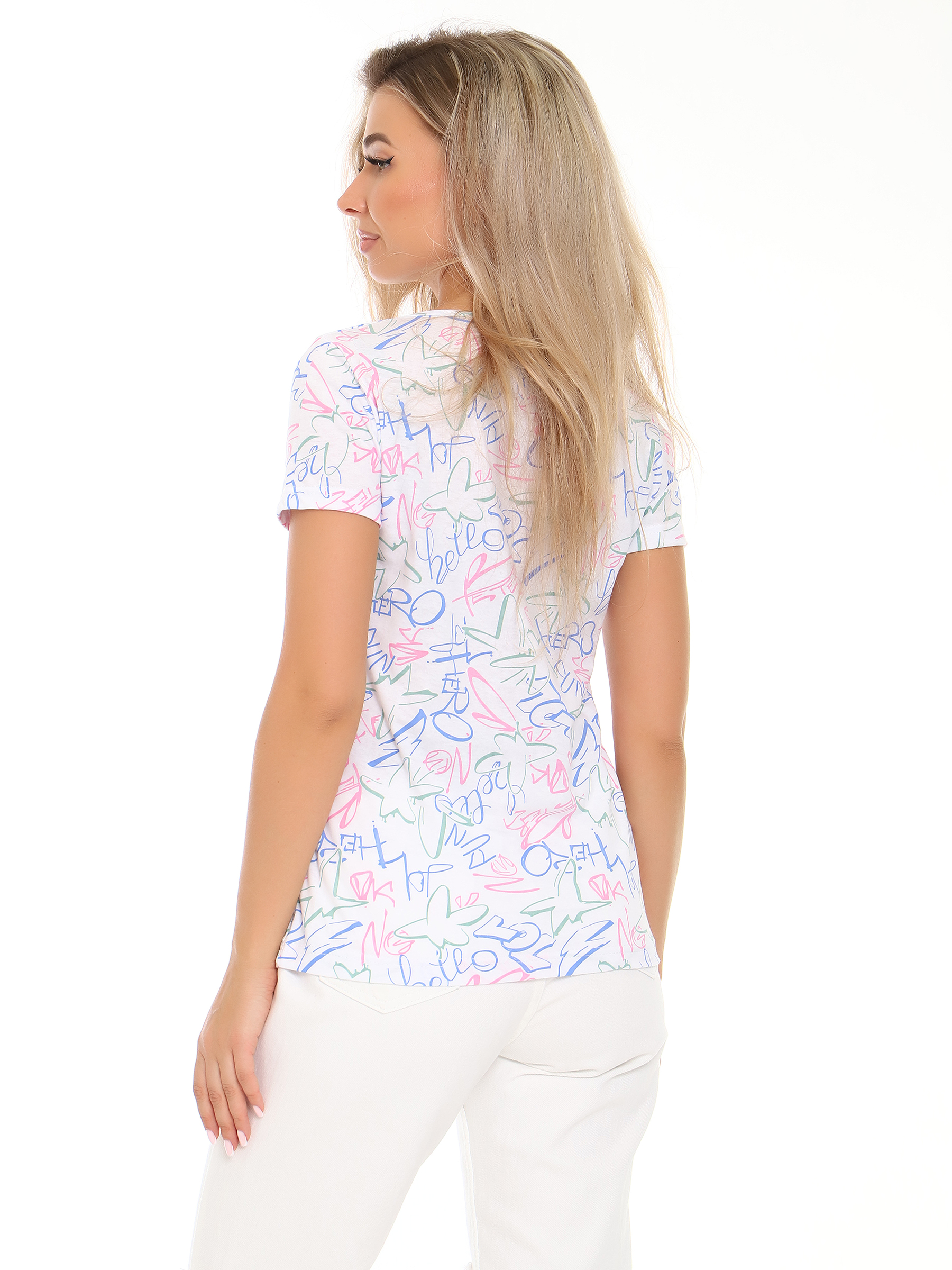 Футболка с красивым, ярким рисунком - это комфортная одежда, которую выбирают для ношения в летний или теплый демисезонный период. У базовой модели из коллекции бренда ТИО прямой полуприлегающий фасон и оптимальная длина, короткие рукава и округлый вырез горловины.