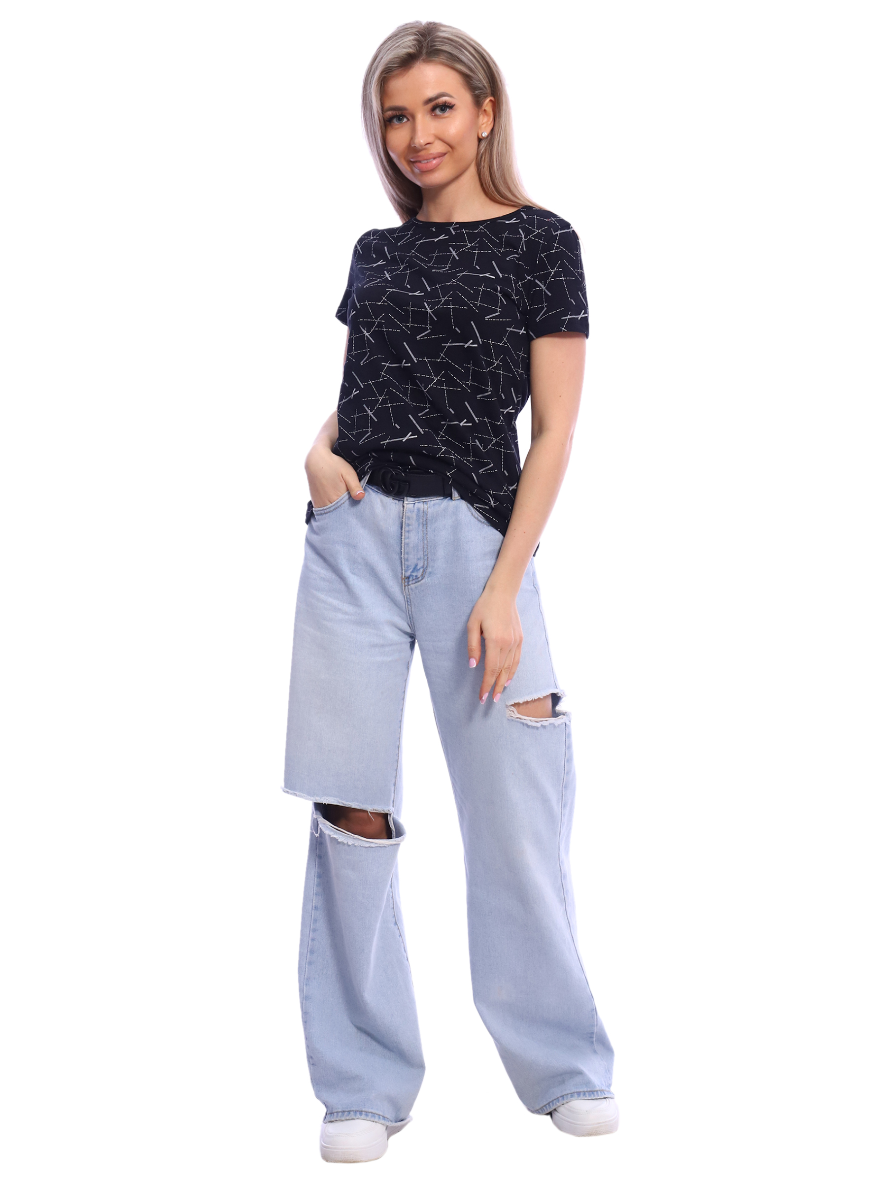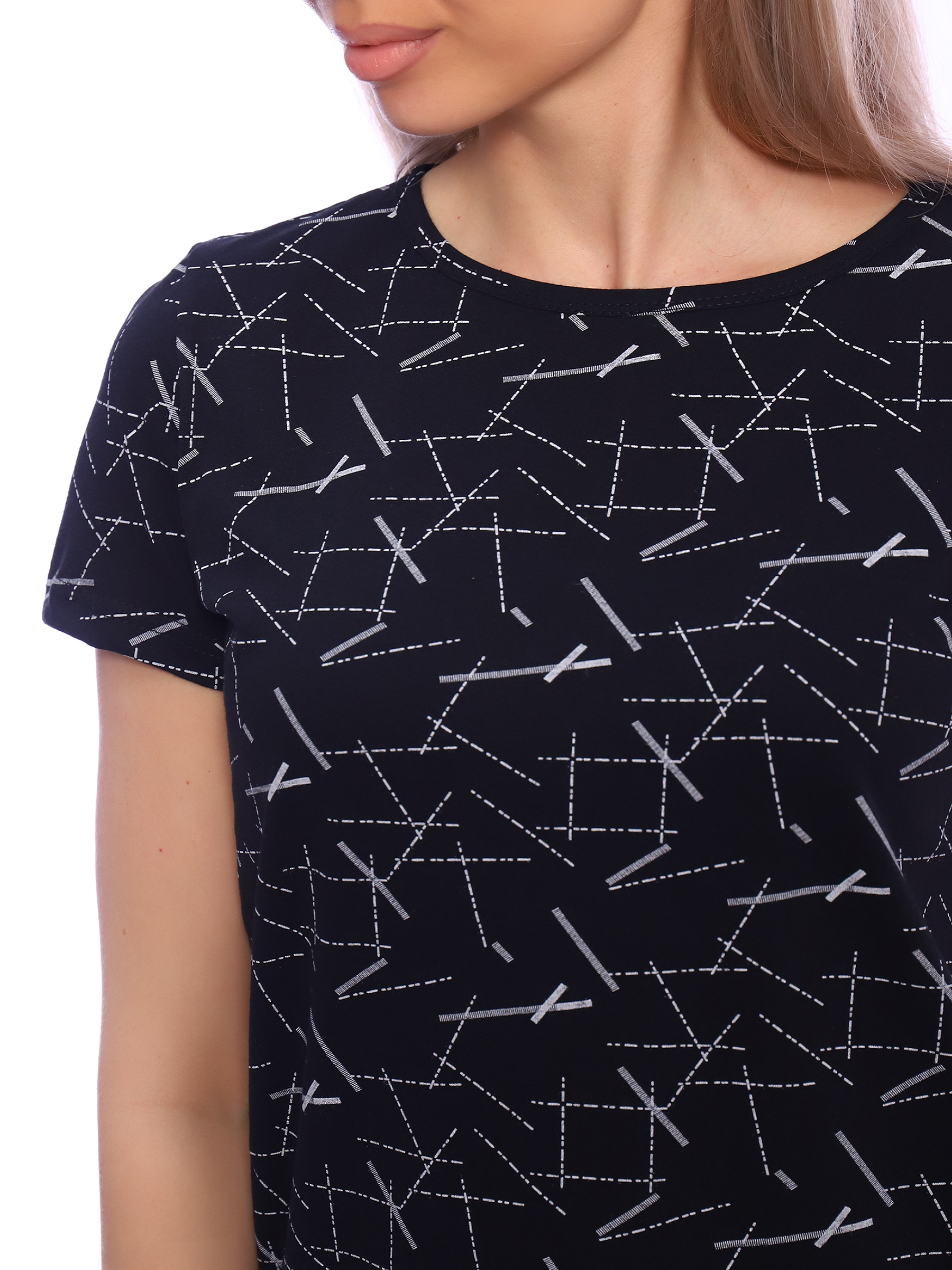 Футболка с красивым, ярким рисунком - это комфортная одежда, которую выбирают для ношения в летний или теплый демисезонный период. У базовой модели из коллекции бренда ТИО прямой полуприлегающий фасон и оптимальная длина, короткие рукава и округлый вырез горловины.