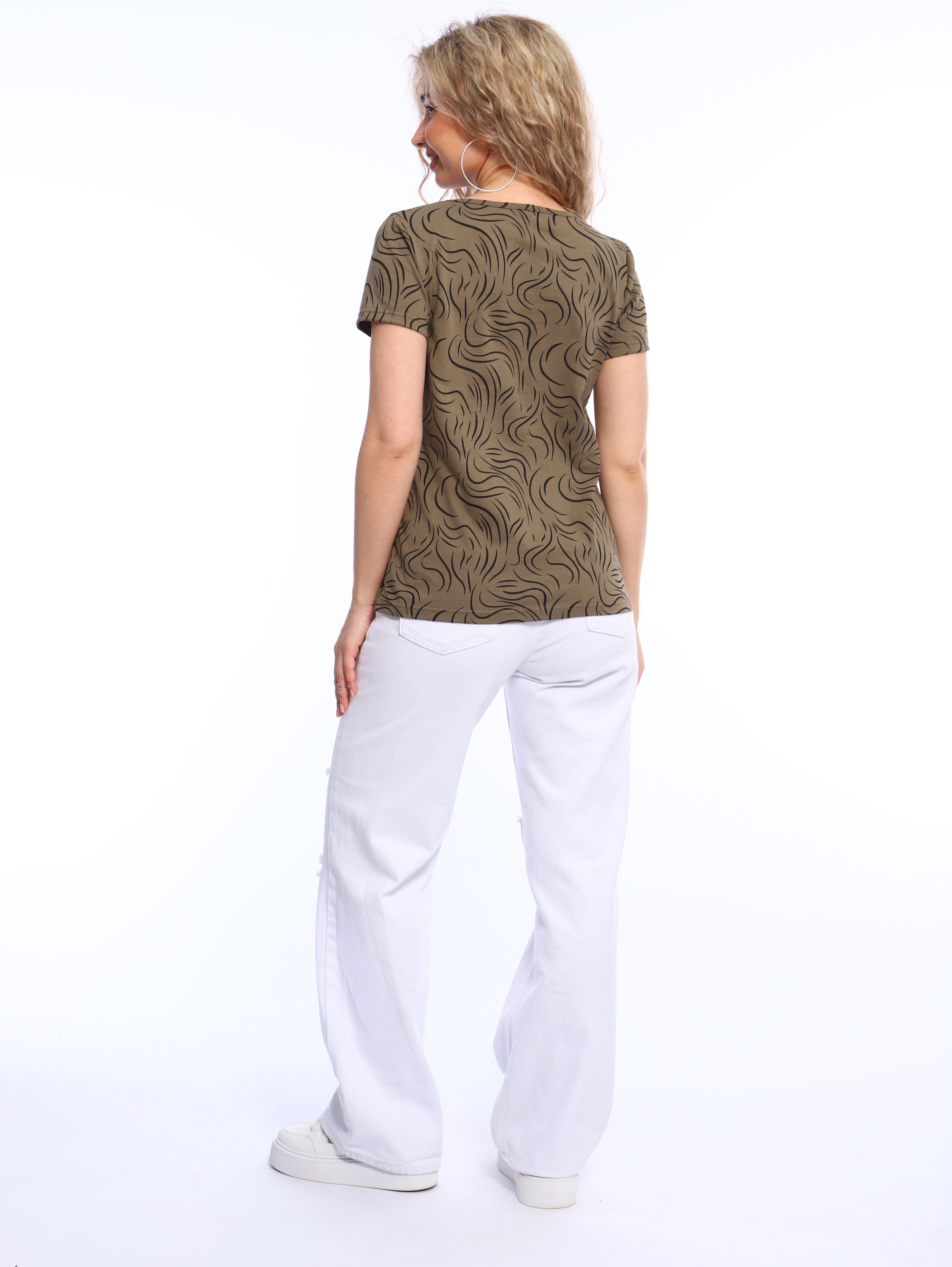 Футболка с красивым, ярким рисунком - это комфортная одежда, которую выбирают для ношения в летний или теплый демисезонный период. У базовой модели из коллекции бренда ТИО прямой полуприлегающий фасон и оптимальная длина, короткие рукава и округлый вырез горловины.
