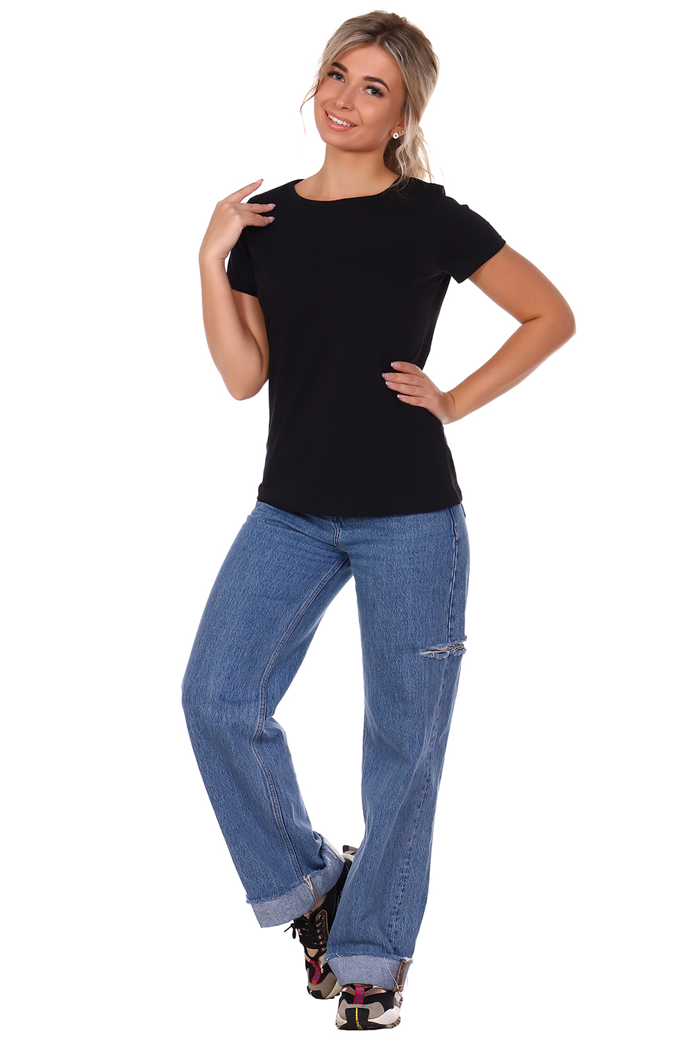 Базовая женская футболка классического фасона с коротким рукавом и округлым вырезом, отделанным кантом. Универсальная модель легкой футболки отлично подойдет для любого образа и станет необходимой вещью в вашем гардеробе. Стильная женская футболка - отличный подарок на День рождения. Летняя однотонная футболка свободного кроя включает большие размеры для полных женщин с пышными формами, подойдет для беременных и будущих мам. Длина изделия рассчитана на рост +/-170 см, но если Вы выше, будет сидеть как трендовая укороченная футболка, если ниже - то как удлиненная женская футболка. Яркая футболка для девушки выполнена из мягкого хлопка. Эта футболка, но не большого размера подойдет как футболка для девочки в школу. Ориентируйтесь при выборе на российские размеры и таблицу от производителя (на дополнительных фото слева).
