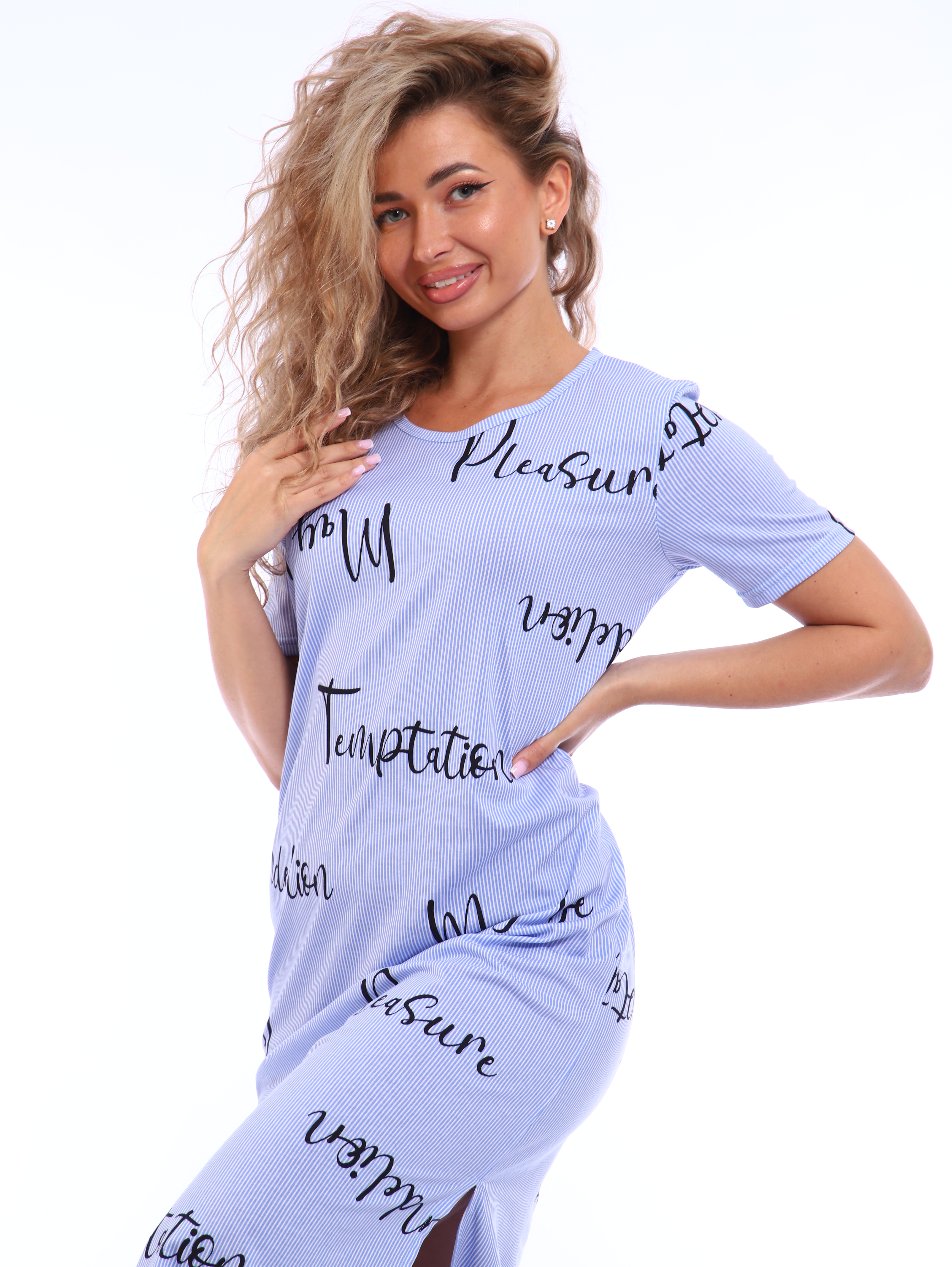 Представляем вам летнее платье от ТИО, которое станет настоящим must-have в вашем гардеробе! Это платье-футболка из натурального хлопка подарит вам комфорт и свежесть в жаркие дни. Его свободный крой идеально подходит тем, кто ценит удобство и свободу движений. Универсальный принт с надписями в тренде сезона и легко сочетается с любыми аксессуарами. Благодаря своей длине миди, это платье станет отличным выбором как для повседневных прогулок, так и для более торжественных мероприятий. Его гладкая фактура приятна к телу, а дышащий материал обеспечит вам комфорт в течение всего дня. Стильный U-образный вырез горловины и короткие рукава добавляют образу легкости и женственности. Платье не имеет застежки, что делает его еще более удобным в носке. ТИО заботится о качестве и доступной цене, поэтому вы можете быть уверены, что это платье станет вашим любимым летним спутником. Различные расцветки позволят вам выбрать идеальный вариант для вашего стиля.